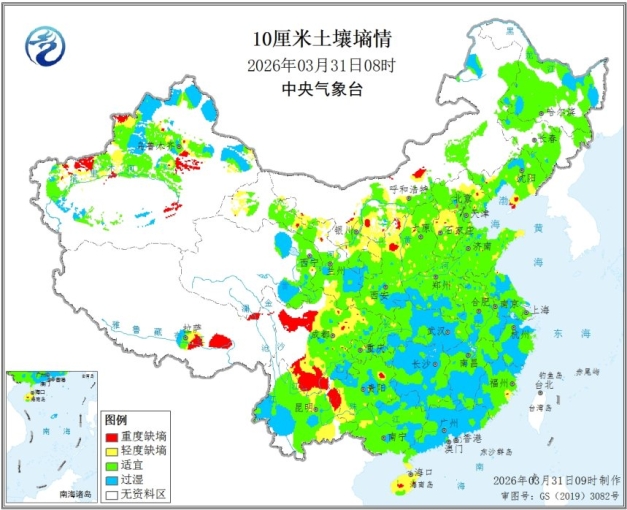 附图1 3月31日10厘米土壤墒情监测