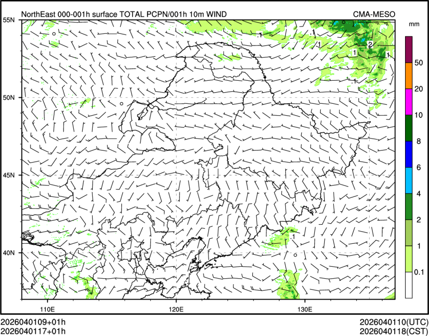 1h降水+10m风场