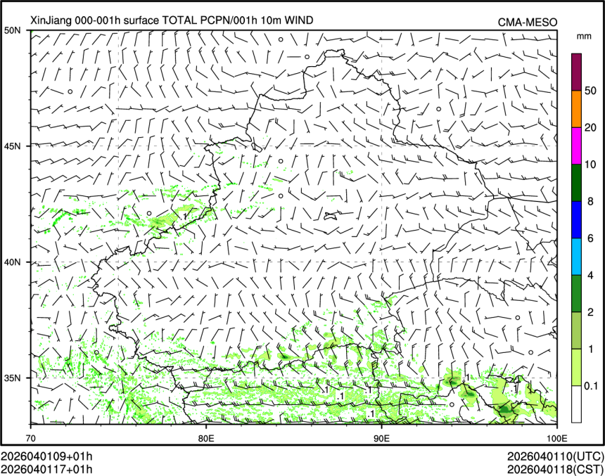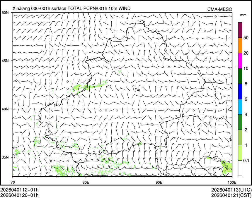 1h降水+10m风场