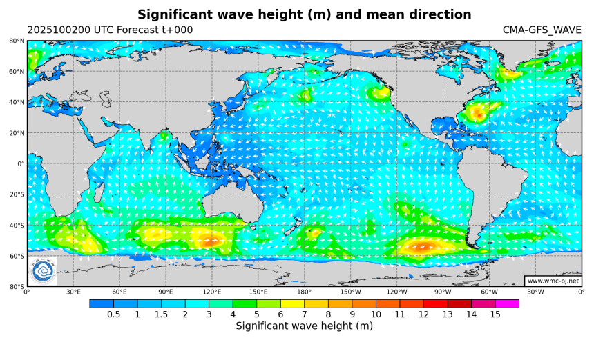 全球-浪高浪向叠加图
