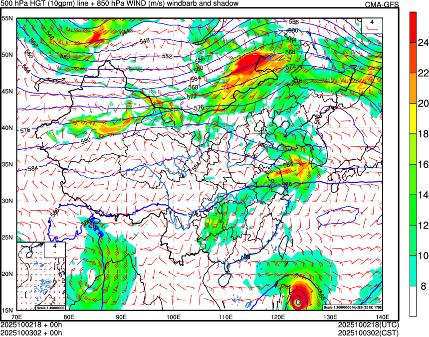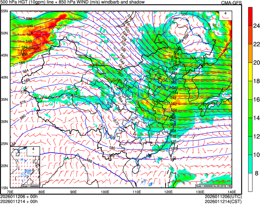 500hPa高度场+850hPa风场