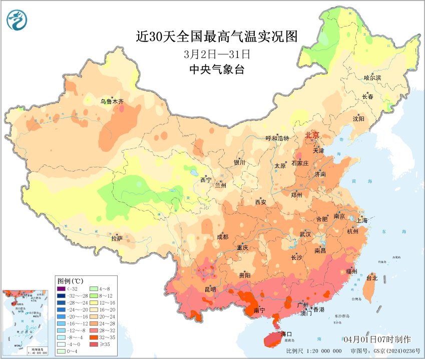 近30天全国最高气温实况图