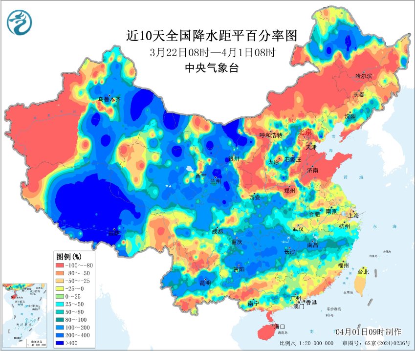 近10天降水距平百分率